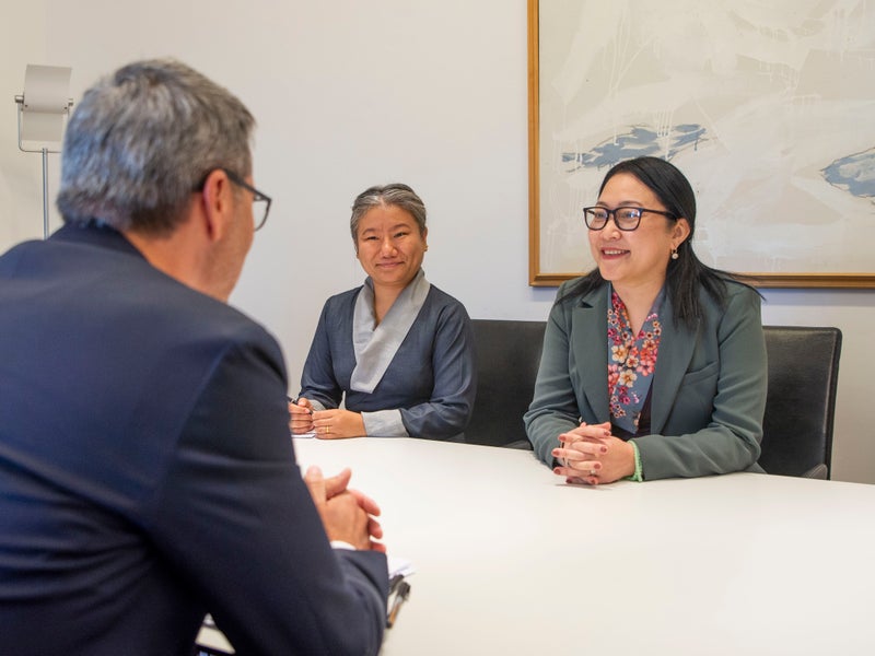 - Il colloquio tra Arno Kompatscher, Kalon Norzin Dolma (a destra) e Thinlay Chukki (a sinistra) (Foto: ASP/Fabio Brucculeri) » [IMG 1 MB]